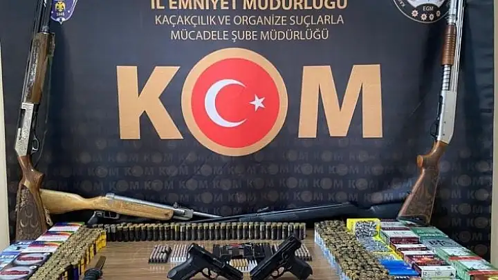 KOM Şube tarafından kentte gerçekleştirilen bir başka operasyonda ise Cumhuriyet Başsavcılığı koordinesinde Silah Ticaretine yönelik fiziki takipli çalışmalar neticesinde; M.B. isimli şahsa ait 2 ayrı adrese operasyon düzenlendi. Yapılan aramalarda 2 adet tabanca, 23 adet 9 mm çapında tabanca fişeği, 3 adet uzun namlulu pompalı tüfek, 1 adet yivli tüfek, 4 adet kılıç, 6 adet tabanca şarjörü, 797 adet av tüfeği kartuşu ve 657 adet kurusıkı tabanca fişeği ele geçirildi.