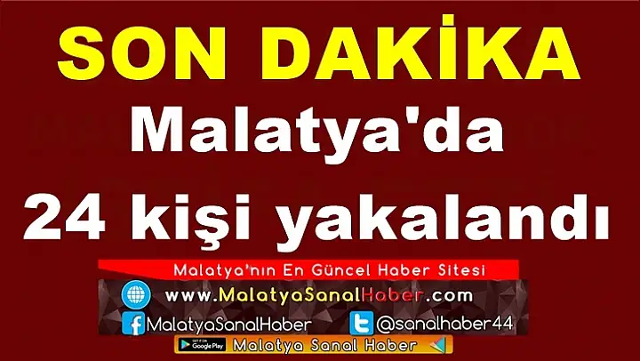 Malatya Emniyet Müdürlüğü Asayiş Şube Müdürlüğü tarafından aranan şahısların yakalanmasına yönelik çalışma başlatıldı. Kent genelinde 18 ekip, 80 polisle eş zamanlı operasyon gerçekleştirildi. Yapılan operasyonlarda haklarında çeşitli suçlardan dolayı yakalama kararı bulunan 24 kişi gözaltına aldı. Şüpheliler sağlık kontrollerinin ardından Asayiş Şube Müdürlüğüne götürüldü.