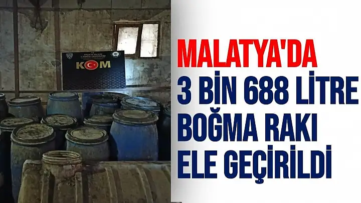 Malatya´da polis tarafından yapılan operasyonda 3 bin 688 litre el yapımı boğma rakı ele geçirildi.