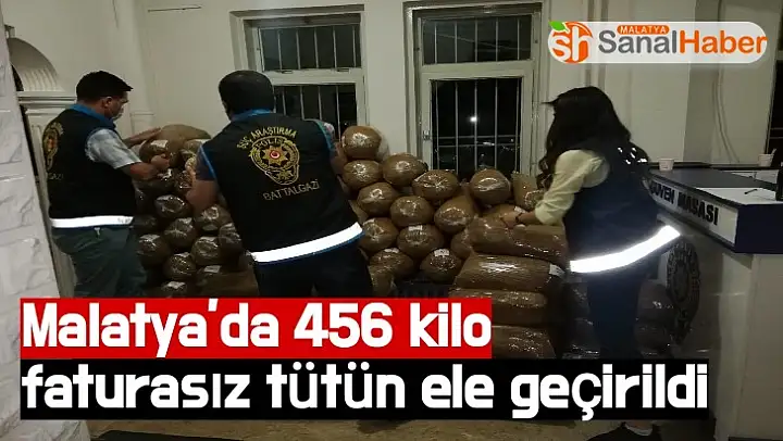 Malatya'da 456 kilo faturasız tütün ele geçirildi.