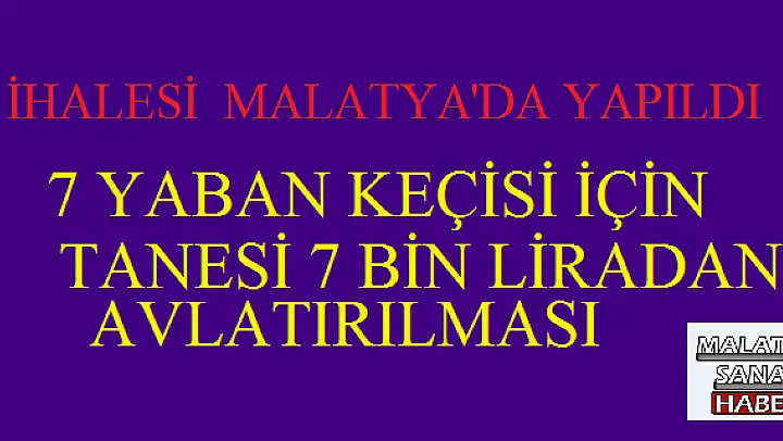 Yaban keçisi avı için ihalelerin 15 Haziran 2016 tarihinde Orman ve Su İşleri Bakanlığı Malatya 15. Bölge Müdürlüğü'nde yapılacağı belirtildi.