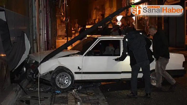 Malatya'da alkollü olduğu ileri sürülen sürücü elektrik direğine çarptıktan sonra işyerine daldı.