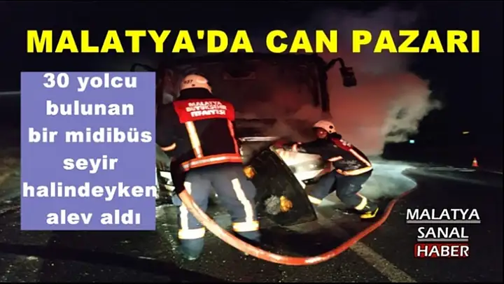 Malatya'da içinde 30 yolcu bulunan bir midibüs seyir halindeyken alev aldı. Yolcuların canını son anda kurtardığı olayda midibüs küle döndü.