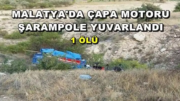 Malatya'nın Akçadağ ilçesinde çapa motorunun şarampole yuvarlanması sonucunda 1 kişi hayatını kaybetti, 2 kişi yaralandı.