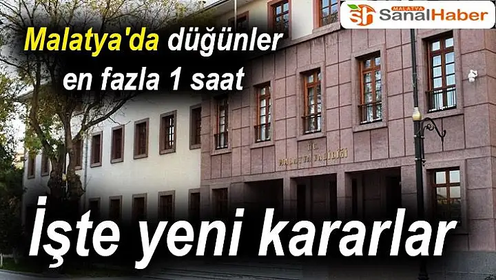 Malatya Valiliği´nce yapılan yazılı açıklamada İl Hıfzıssıhha Kurulunun, düğün, nişan, nikah, kına gecesi ve sünnet ve organizasyonlarındaki önlemlerle ilgili bazı yeni kararlar aldığı belirtildi.