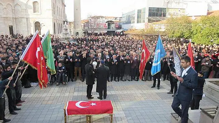 Malatya Ülkü Ocakları tarafından düzenlenen eylemde Kışla Caddesindeki Ülkü Ocakları önünde bir araya gelen grup, Yeni Cami'ye kadar tekbir getirip slogan atarak yürüdü.