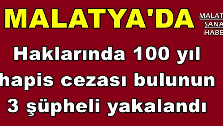 Malatya Asayiş Şube Müdürlüğü ekiplerince haklarında kesinleşmiş toplam 100 yıl hapis cezası bulunan 3 şüpheli yakalandı.