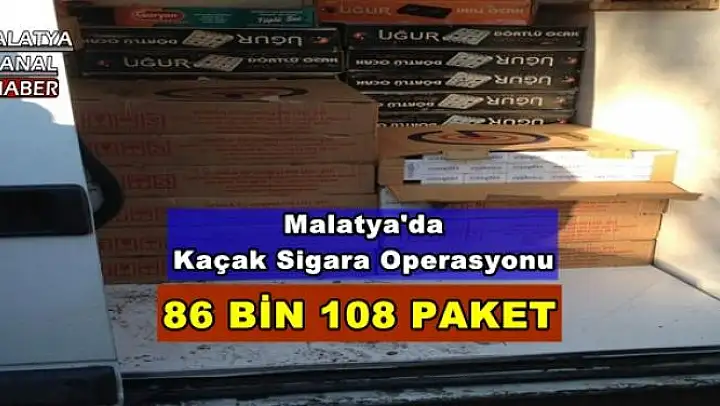 Malatya Emniyet Müdürlüğü'ne bağlı Kaçakçılık ve Organize Suçlarla Mücadele Şube Müdürlüğü ekipleri tarafından bir kamyonda yapılan aramada 86 bin 108 paket gümrük kaçağı sigara ele geçirildi. Kaçakçılık ve Organize Suçlarla Mücadele Şube Müdürlüğü tarafından yapılan açıklamada, “Bir kamyonda yapılan aramada çeşitli markalarda toplam 86 bin 108 paket gümrük kaçağı sigara ele geçirilmiştir. Konuyla ilgili 3 şahıs hakkında 5607 SKM gümrük kaçağı sigara suçundan yasal işlem yapılmıştır" denildi.