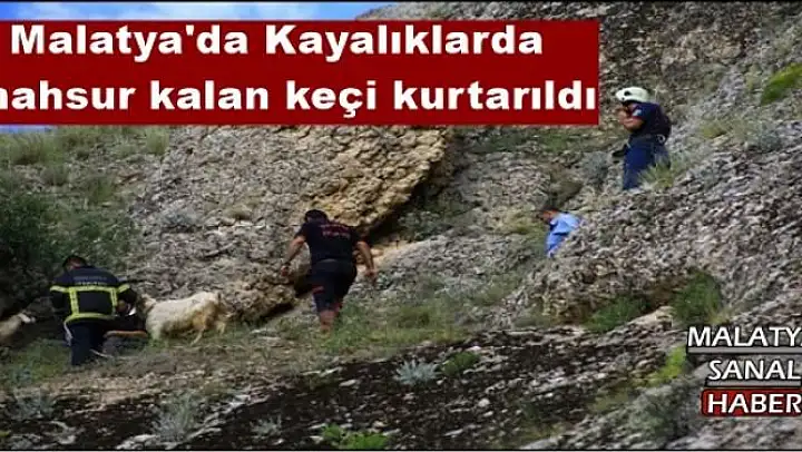 Malatya'nın Darende ilçesinde kayalıklarda mahsur kalan keçi, itfaiye ekipleri tarafından kurtarıldı.