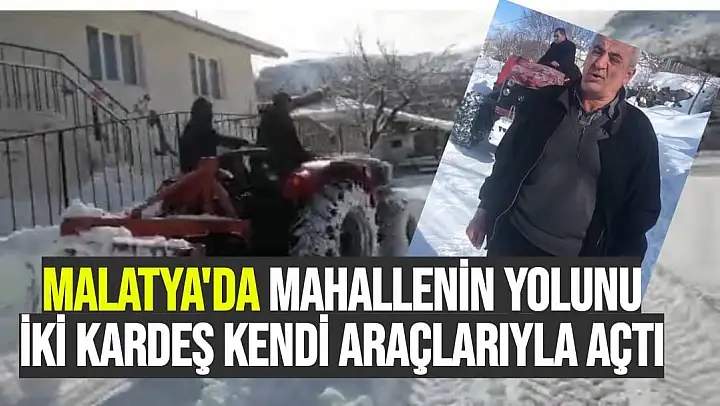 Malatya´da kent genelinde etkili kar yağışı hayatı olumsuz etkilerken, Darende ilçesine bağlı Balaban Mahallesi´nde yaşayan kardeşler İsmail Özdemir ile Murat Özdemir mahallenin kardan kapanan yollarının açılması için kolları sıvadı.