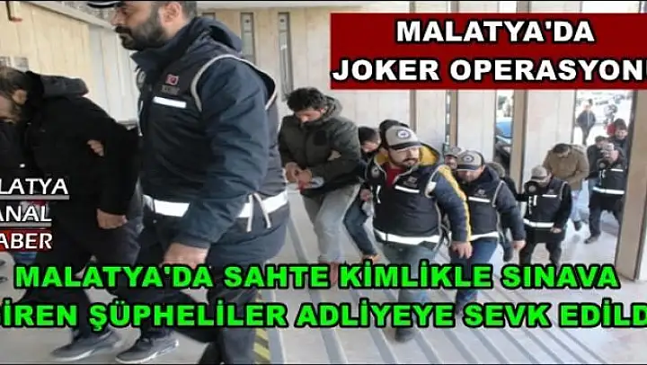 Malatya polisi tarafından gerçekleştirilen ‘Joker' operasyonunda sahte kimliklerle Motorlu Taşıt Sürücü Adayları Sınavına giren 12 kişi ile onlara yardım eden 2 şüpheli gözaltına alındı.