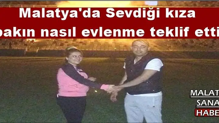 Malatyalı futbolsever Özer Tuzcu, sevdiği kıza taraftarı olduğu Evkur Yeni Malatyaspor'un stadında evlilik teklif etti.