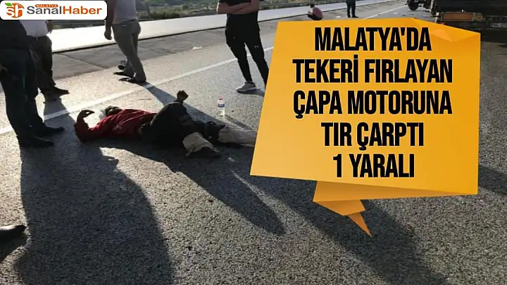 Malatya´da tekeri fırlayan ve devrilen çapa motoruna tır çarptı.Kazada 1 kişi ağır yaralandı.