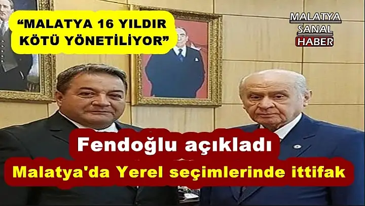 ‘2019 Yerel seçimlerinde AK Parti ile ittifak yapmamız söz konusu değil' diyen Fendoğlu, “Genel Başkanımızda söyledi. 2019 Yerel seçimlerde AK Parti ile birlikte şuan bir ittifak yapmamız söz konusu değil. Bir Malatyalı olarak konuşuyorum, bir vekil olarak cevaplıyorum. 16 yıldır kötü yönetilen bir Malatya var. Kötü yönetilmiş, sadece yüzeysel ve pansumanlarla idare edilmiş bir şehir var. Alt yapısı çökük, genel mahallelerde yol yok, gece kondu türü gettolar oluşturulmuş vaziyette. Toplu konut adı altında, Malatya'mızın en güzel yerleri işgal edilmiş durumda. Bana göre şehrin ruhu, mizacı, kültürü sosyal ve ekonomik yapısı devşirme olmuş bir Malatya var. İnşallah biz bu Malatya'yı yerel seçimlerde halkımıza göstereceğiz” şeklinde konuştu.