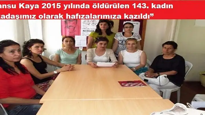 Platform adına basın açıklaması yapan Sevim Alagöz, Özgecan Aslan cinayetini halen hafızalarda odluğu bir süreçte Cansu Kaya cinayeti ile birlikte kadına yönelik şiddetin yine gündeme geldiğini belirtti. Muğla'nın Ortaca ilçesinde kayıp olan ve 3 gün sonra su kanalında cesedi bulunan 18 yaşındaki Cansu Kaya'nın cinsel saldırıya uğrayıp boğularak dereye atıldığını belirten Alagöz, “Cansu Kaya 2015 yılında öldürülen 143. kadın arkadaşımız olarak hafızalarımıza kazıldı” diye konuştu.