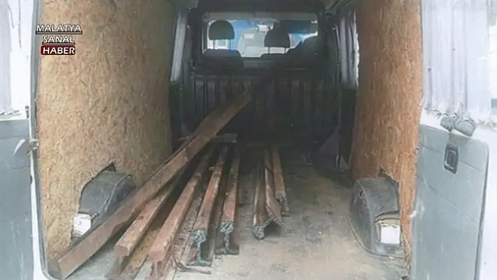 Malatya'da 3 kişi, tren raylarını keserek çaldı.