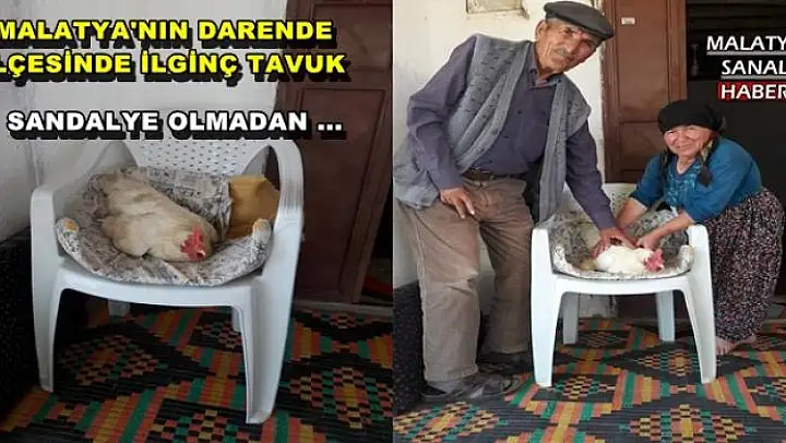Darende ilçesine bağlı Yeniköy Mahallesi'nde yaşayan 75 yaşındaki Şaban ve Cennet Dindar çiftinin kümeslerinde beslediği ve ‘Beyaz' adını verdikleri tavuk, yumurtlamak için ilginç bir yeri kendisine yuva olarak seçti. Kümesteki diğer 3 tavukla birlikte yaklaşık 1 yıl önce yumurtlamaya başlayan ‘Beyaz', sahibinin evinin balkonuna dinlenmek için bıraktığı ve üzerinde de minder olan sandalyeye yumurtladı. İlk başta durumu normal karşılayan Şaban ve Cennet Dindar, zaman geçtikte tavuğun sürekli aynı sandalyeye gelip yumurtladığını gördü. ‘Beyaz' adını verdikleri tavuklarının da diğerleri gibi kümese yumurtlaması için uğraş veren Dindar çiftinin denedikleri yöntemler sonuç vermedi. Dindar çifti artık her sabah kümesin kapısını açtıktan sonra Beyaz'ın yumurtlaması için sandalyeye minderi serip bekliyor.
