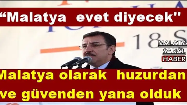 15 Temmuz hain darbe girişimine karşı Malatya'nın dimdik durarak alçaklara geçit vermediğini hatırlatan Bakan Tüfenkci, “28 Şubatlara, 15 Temmuzlara geçit vermeyen Malatya tabi ki ülkemizin istikrar ve geleceği için cumhurbaşkanlığı hükümet sistemine ‘evet' diyecektir. Bunun için Malatya olarak gece gündüz demeden çalışmaya, en yüksek oy oranını Malatya'dan çıkarmaya söz veriyoruz. Bütün Türkiye'ye haykırıyoruz; Malatya olarak biz istikrardan yana, huzurdan ve güvenden yana olduk. Biz, milli birlik ve beraberlikten yana olduk, bunun için de her zaman cumhurbaşkanlığı sistemine ‘evet' diyoruz” şeklinde konuştu.