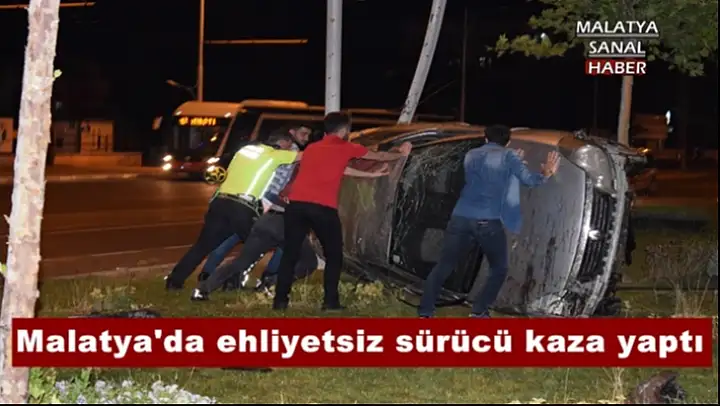 Malatya'da ehliyetsiz sürücünün kullandığı otomobil refüje çarparak savruldu. Kazada 1 kişi yaralandı.