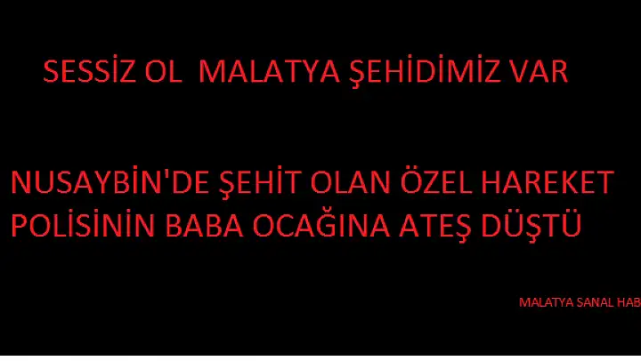 Mardin'in Nusaybin ilçesinde sürdürülen terör operasyonunda şehit olan Özel Harekat Polisi Oğuzhan Günaydın'ın memleketi Malatya'ya acı haber ulaştı.