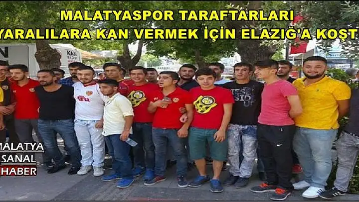 Elazığ'daki bombalı saldırının ardından vatandaşlar kan vermek için hastanelere akın ederken, Malatyaspor Taraftarlar Derneği de şehir merkezinden otobüs kaldırarak yaralılara kan vermek için Elazığ'a gitti.