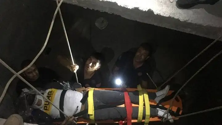 Elazığ´da inşaat halindeki binaya giren ve merdiven boşluğuna düşerek yaralanan şahıs, sağlık ve itfaiye ekiplerinin uzun uğraşları sonucu sedyeyle halat yardımıyla kurtarıldı.