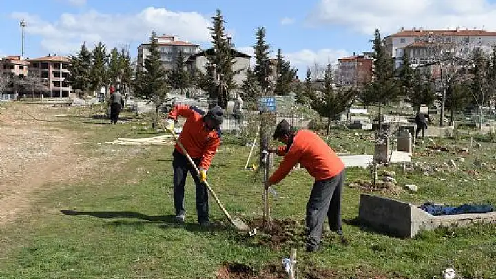 İlkbahar mevsimi dolayısıyla fidan dikim çalışmalarının yoğun bir şekilde sürdüğü belirtilirken, mezarları ziyarete giden vatandaşlardan, dikilen fidanları sulamaları istendi.