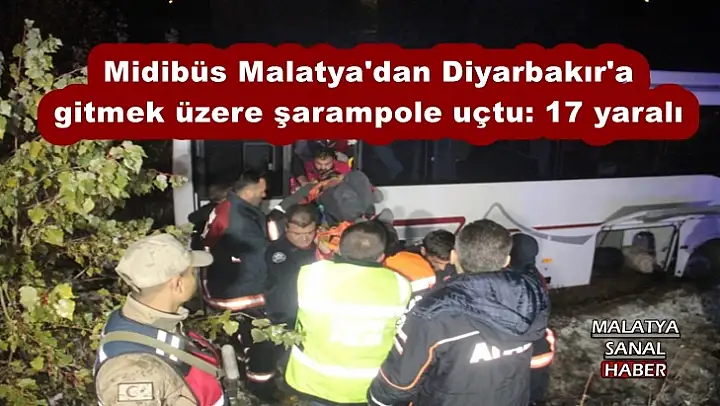 Midibüs Malatya'dan Diyarbakır'a gitmek üzere şarampole uçtu 17 yaralı