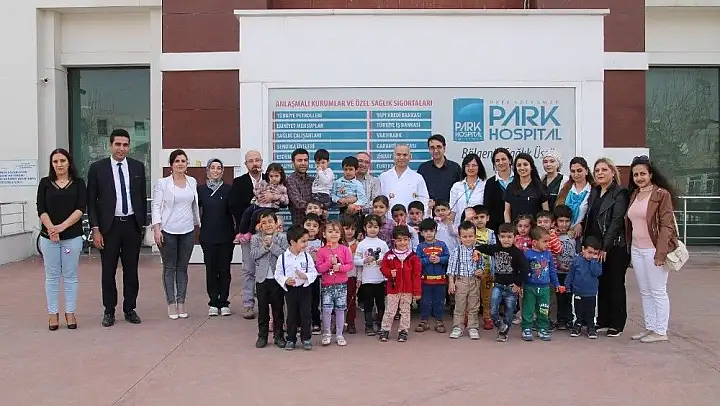 Bilgin Kreşte eğitim gören 30 anaokul öğrencisi Özel Park Hastanesi yöneticilerini ve çalışanlarını ziyaret ederek karanfil dağıttı. Meslek ve sağlık çalışmalarını tanımayı amaçlayan ziyarette Hastane Başhekimi Sadık Eryılmaz, minik öğrencilere sağlık ve hastane ile ilgili bilgiler verdi.
