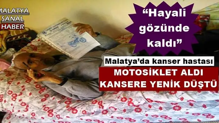 Malatya'da kanser hastası olan motosiklet sevdalısı Erol Ertaş isimli vatandaş yıllarca hayalini kuruduğu motosikletine kavuştuğu gün hayatını kaybetti.