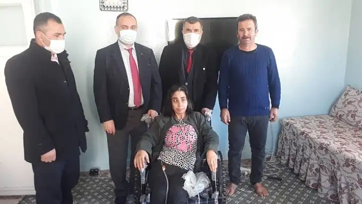 Gölbaşı İlçe Müftülüğü Engelli Koordinatörlüğü tarafından doğuştan 2 ayağı tutmayan, mental retardasyon hastası 25 yaşındaki bedensel engelli kişiye engelli sandalyesi verildi.