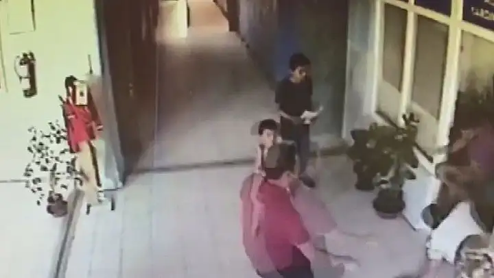 Okul müdürünün odasında yaşanan darp anı okulun güvenlik kamerasınca kaydedildi.
