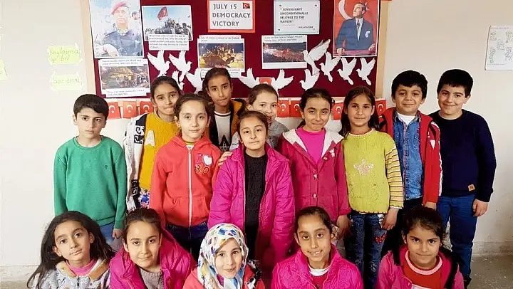 Adıyaman'ın Kahta Şeyhbaba İlkokulu öğrencileri 15 Temmuz darbe girişimini İngilizce anlattı.
