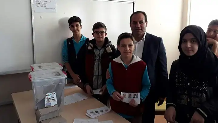 Adıyaman Şehit Akif Güleş İmam Hatip Ortaokulu öğrencileri demokrasiyi yaşayarak öğreniyor.