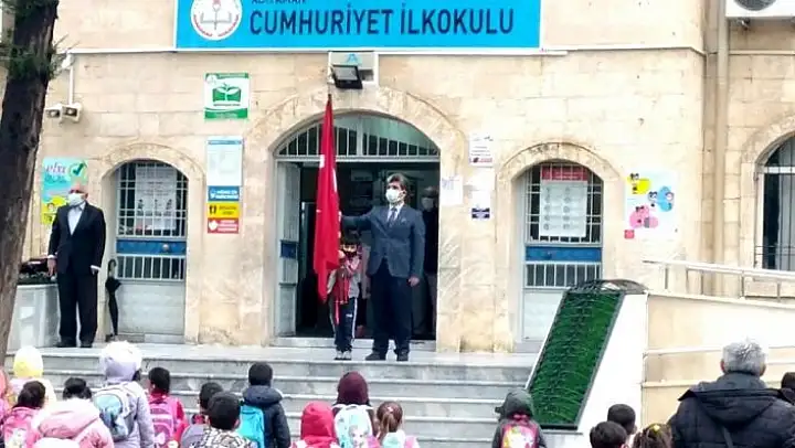 Adıyaman Cumhuriyet İlkokulunda bu hafta sonu okunan İstiklal Marşı töreninde gururlandıran görüntüler ortaya çıktı. Okulların ara tatile girmesi ve hafta sonu olması nedeniyle okul bahçesinde düzenlenen İstiklal Marşı töreninde 1. Sınıf öğrencisi Oğuzhan Güzel, ahşap direkteki Türk Bayrağını kendisi tutmak istedi.