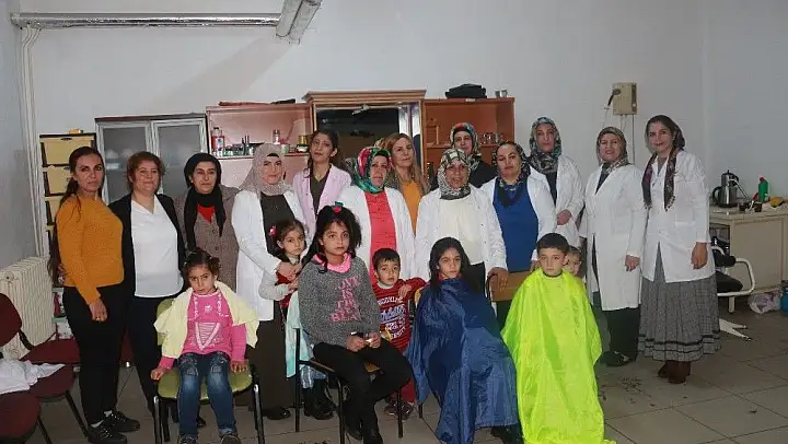 'Okuldaki kursta Suriyeli öğrencilerin saç bakımları yapılıyor'
