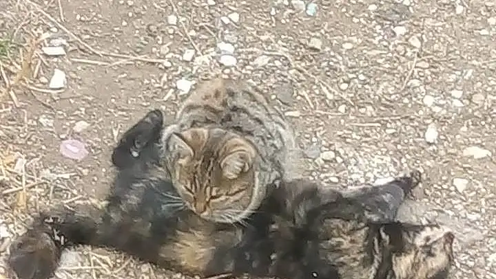 Sivas'ın Yıldızeli ilçesinde bir kedi, otomobilin çarpması sonucu ölen kardeşinin başında dakikalarca bekledi.