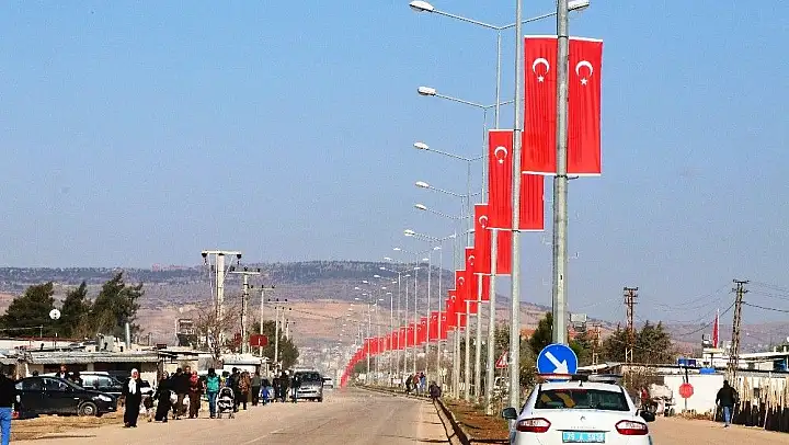 TSK'nın Afrin bölgesine başlattığı 'Zeytin Dalı Hareketi' başarılı bir şekilde devam ederken, Öncüpınar Gümrük Kapısına giden yol ise Türk Bayrakları ile donatıldı.