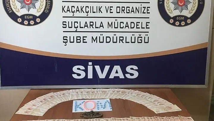 İl Emniyet Müdürlüğü Kaçakçılık ve Organize Suçlarla Mücadele Müdürlüğü ekipleri Sivas Şehirlerarası Otobüs Terminali'nde yaptıkları devriye görevi sırasında şüphe üzerine C.O.K. ve Y.E.'yi durdurdu. Şahısların üzerlerinde yapılan aramada poşet içerisinde farklı serilerden 49 adet 50 TL'lik sahte banknot ele geçirildi. Şüpheli şahısların evinde yapılan aramada ise 133 adet 50 TL'lik sahte banknot ve 59 adet ecstasy hap ele geçirildi. Polis ekipleri 9 bin 100 liralık sahte paraya ve uyuşturucu maddelere el koydu. Çok sayıda suç kaydı olduğu tespit edilen şahıslar, emniyetteki işlemlerinin ardından adliyeye sevk edildi.