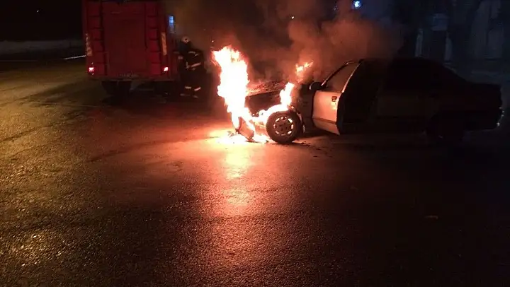 Otomobil, itfaiye ekiplerinin soğutma çalışmasını tamamlamasının ardından çekici yardımıyla olay yerinden kaldırıldı.