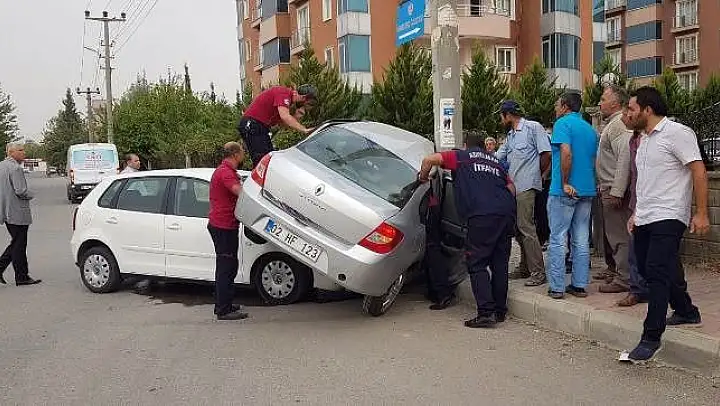 'Otomobil diğer otomobilin üzerine çıktı, sürücü sıkıştı'