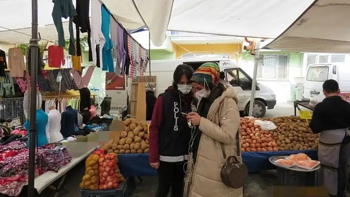 Malatya´da, polis tarafından semt pazarında kadınlara KADES uygulaması hakkında broşür dağıtılıp, bilgilendirme yapıldı.