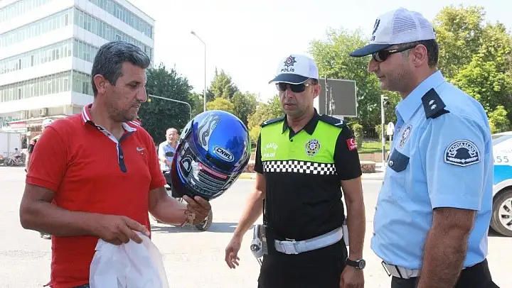 'Polis, denetimlerde kaskı olmayan sürücülere kask hediye etti'