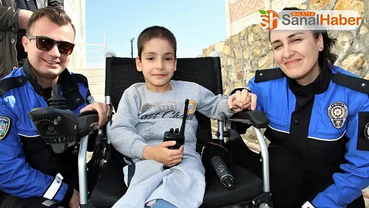 Elazığ'da polislerin her fırsatta evine giderek ziyaret edip yalnız bırakmadığı doğuştan açık omurga rahatsızlığı nedeniyle yürüyemeyen 7 yaşındaki Efraim Yiğit'in akülü engelli aracı hayali gerçek oldu. Polislerin eşliğinde akülü aracına binerek süren Yiğit, en kısa sürede bu araçla polisleri ziyaret edeceğini söyledi.