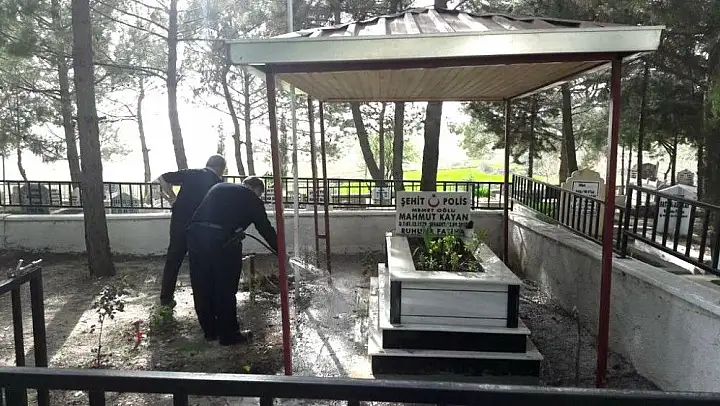 'Polisi Şehit Kayan´ın mezarını temizledi'