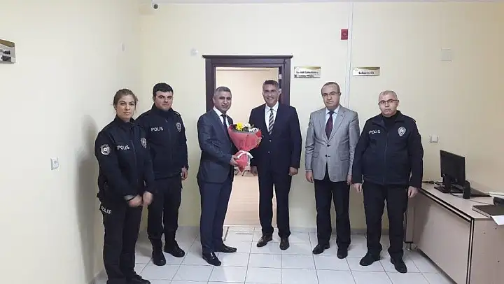 Talip Yücel'i ziyaretin ardından ilçe merkezinde bulunan okulları ziyaret eden polisler tüm öğretmenlere karanfil verdi.