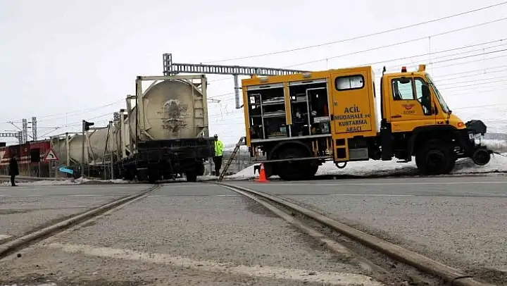 'Raydan çıkan yük treninin bir kısmı karayolunda kaldı'
