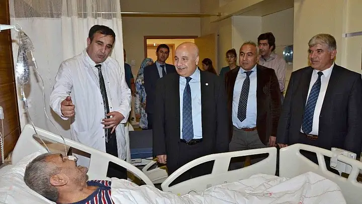 Rektör Gönüllü, başarılı bir operasyon geçirerek beynindeki tümörü alınan Ali Kurnaz adlı vatandaşa Rektör Yardımcısı ve aynı zamanda Tıp Fakültesi Dekanı Prof. Dr. Ali Aydın ile birlikte geçmiş olsun dileklerini iletti.