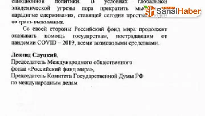 Slutskiy, bu mektubun korona virüs ile mücadele döneminde bile Rusya'ya uygulanan ambargoyu kaldırma teklifini reddeden Birleşmiş Milletleri protesto etmek amacı ile yazıldığını açıkladı.