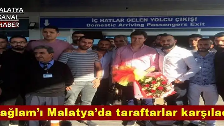 Basın Sözcüsü Erdal Gündüz ile birlikte geldikleri Malatya'da coşkulu taraftar grubunun karşıladığı Sağlam'a sevgi gösterisinde bulunuldu ve çiçek verildi.